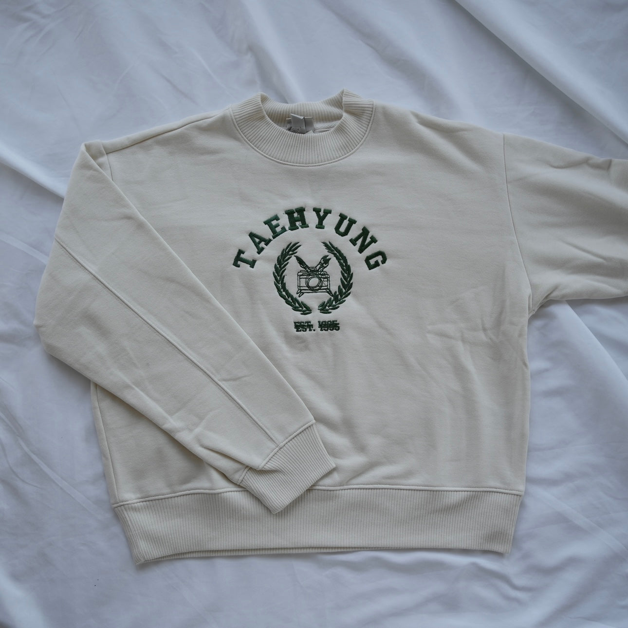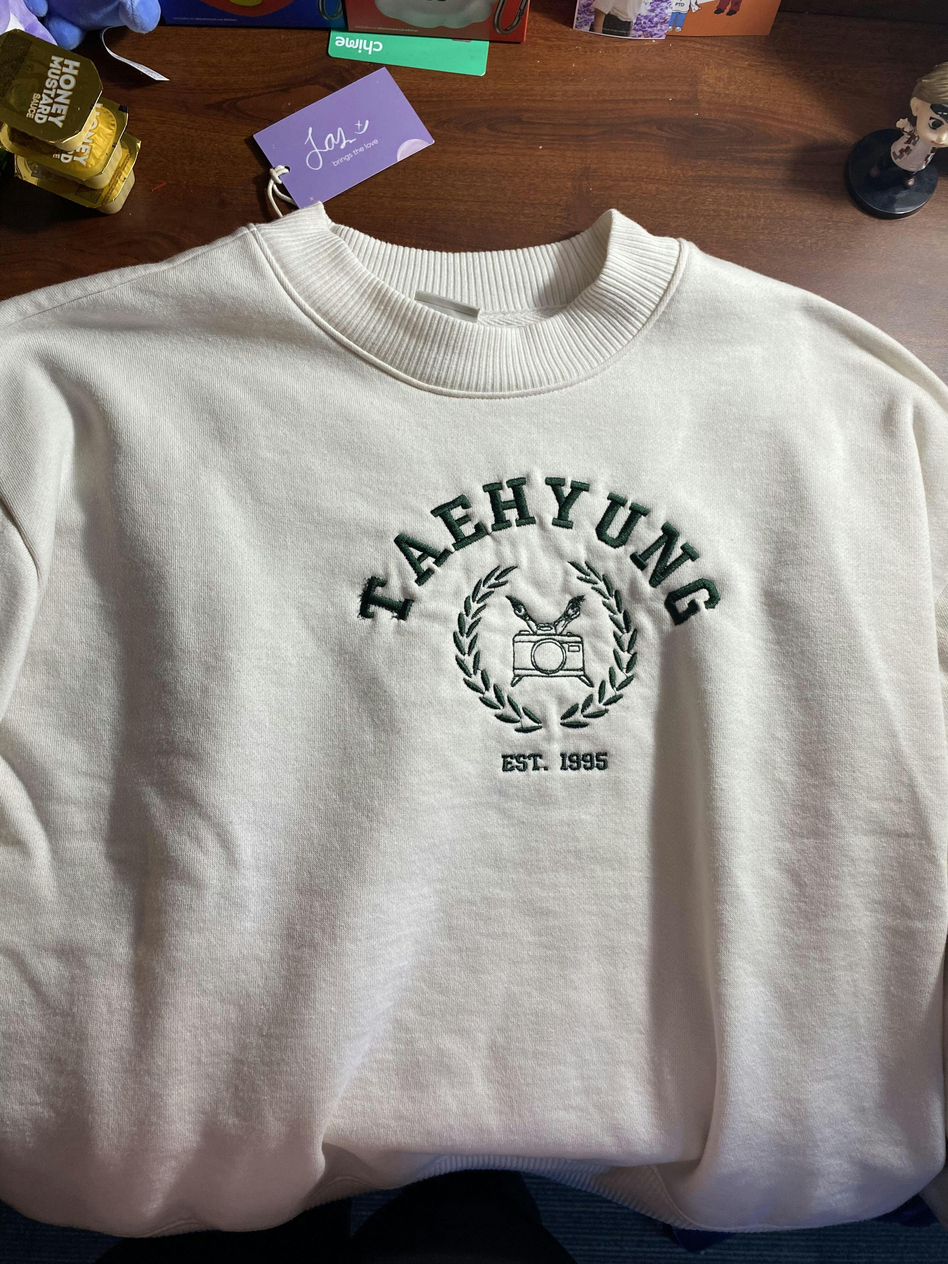 - University of Taehyung Women's Cream Crewneck (Size S) - H and Camera is double stitched