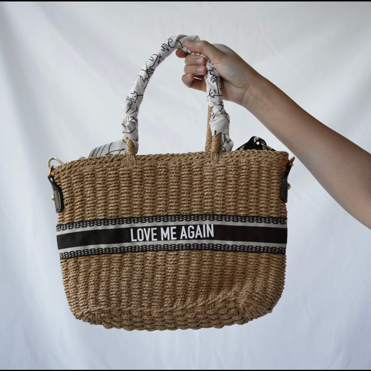 - Love Me Again Tote - "Again" is slanted upwards