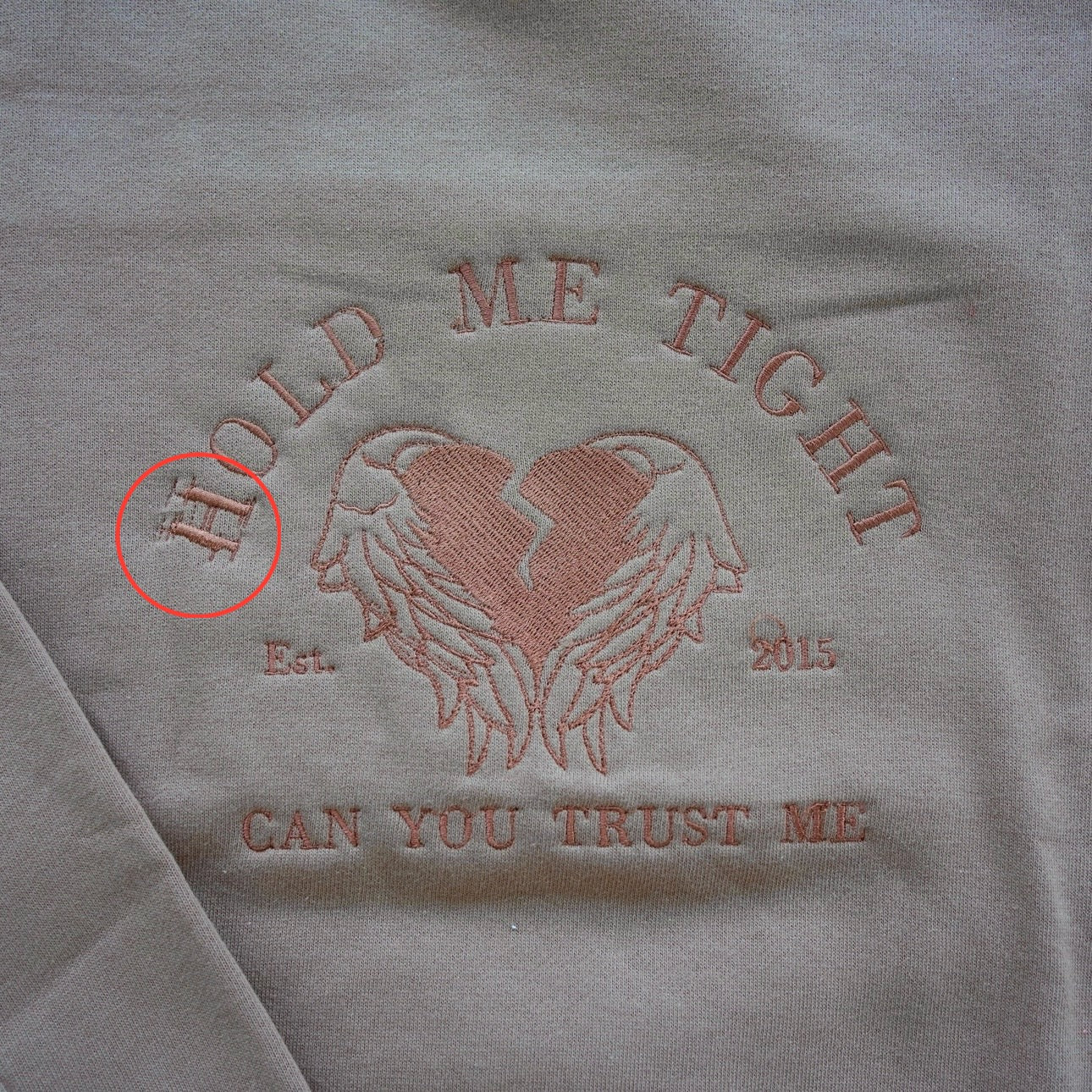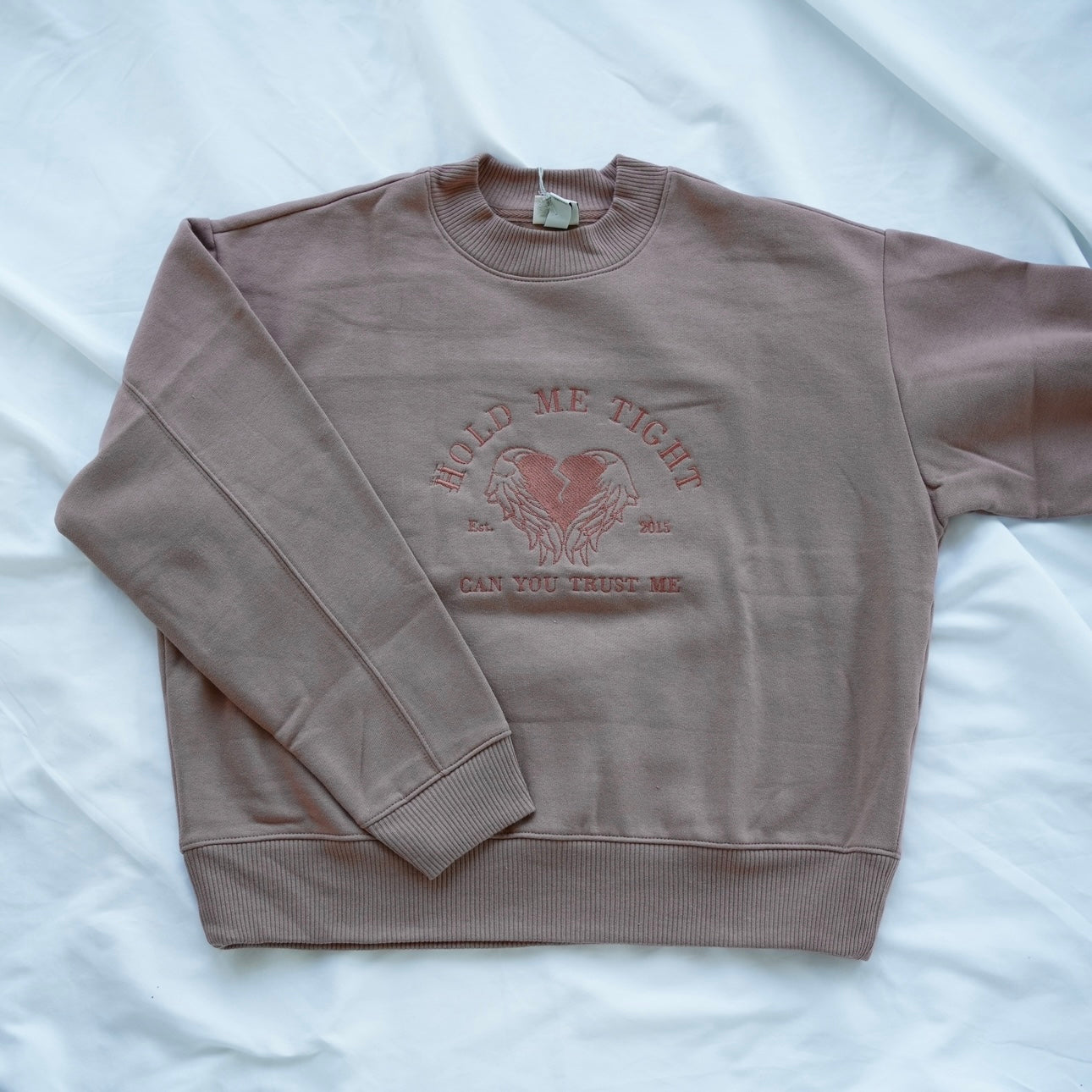 - Hold Me Tight Women's Cocoa Crewneck (Size S) - H is double stitched