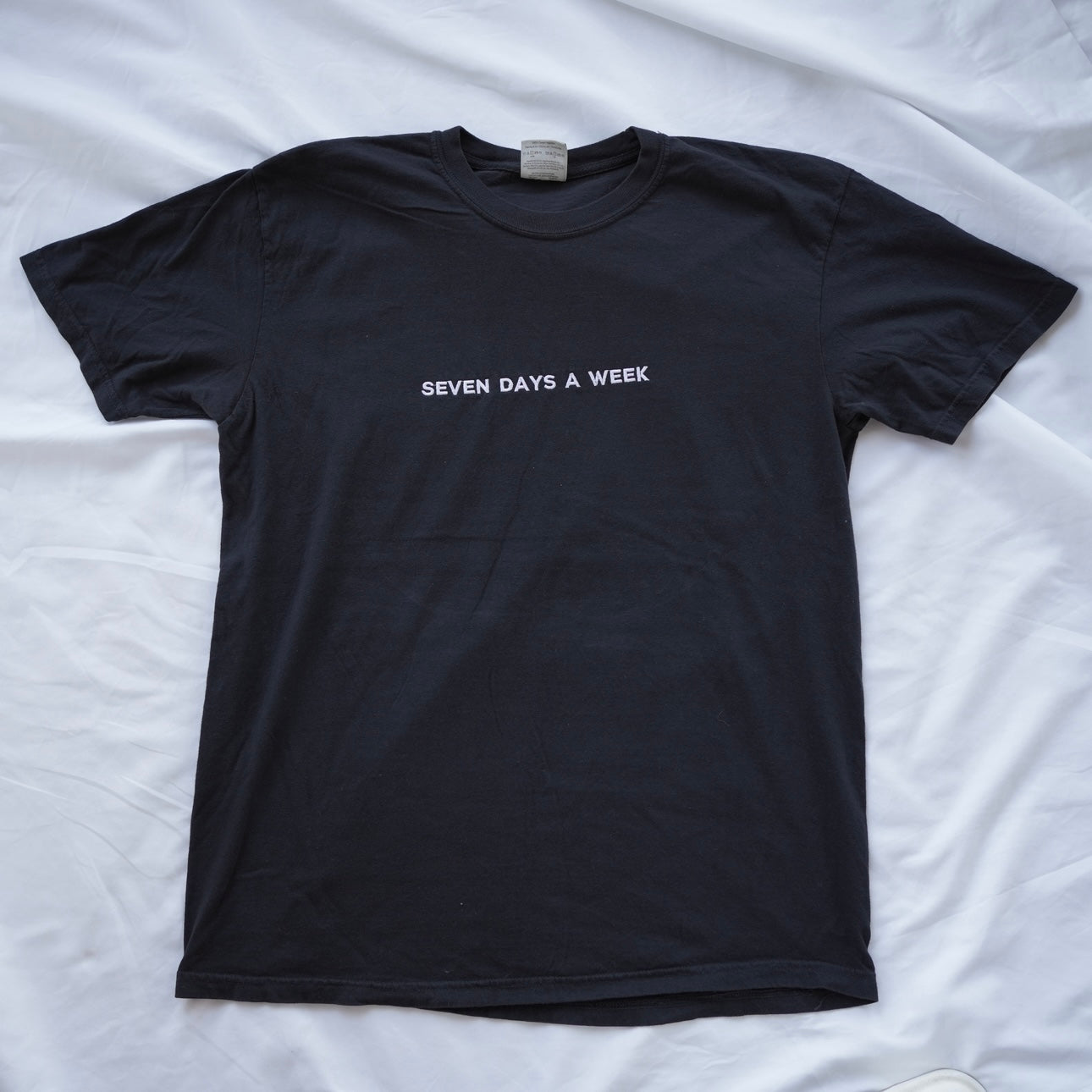 - SEVEN Black T-Shirt (Size L) - Front design is shifted to the left