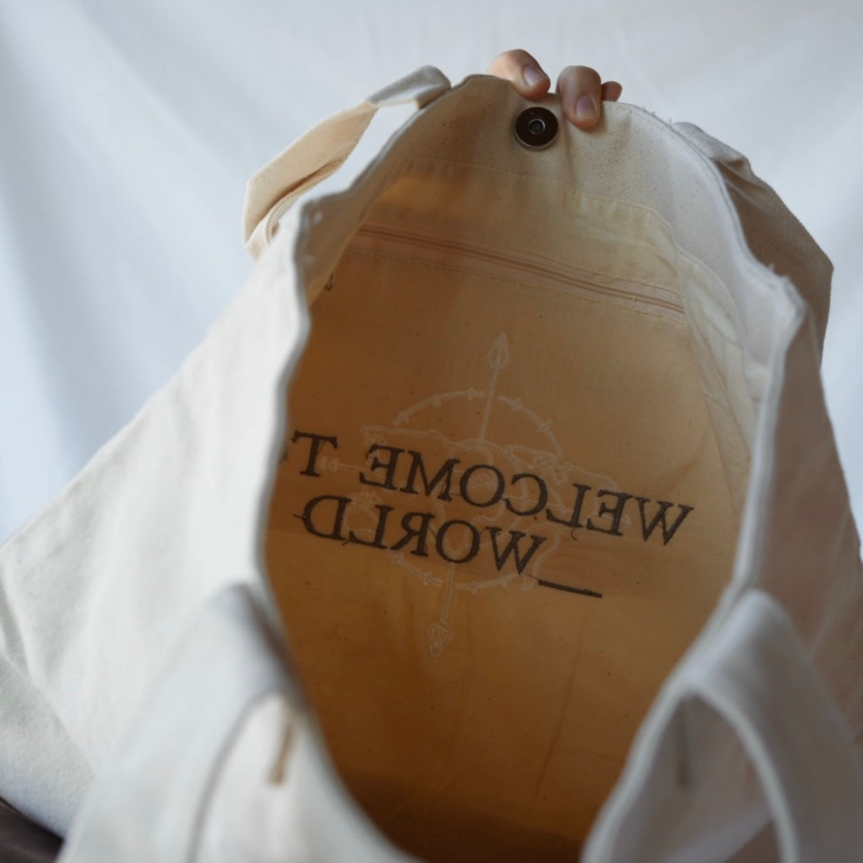 - WORLD_ Tote - Stitched on wrong side resulting in inner zippered pocket to be sealed