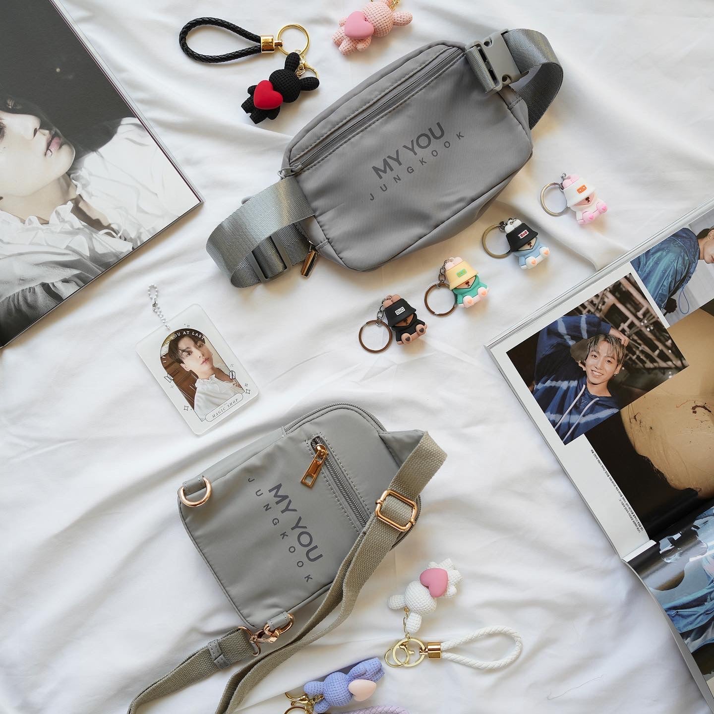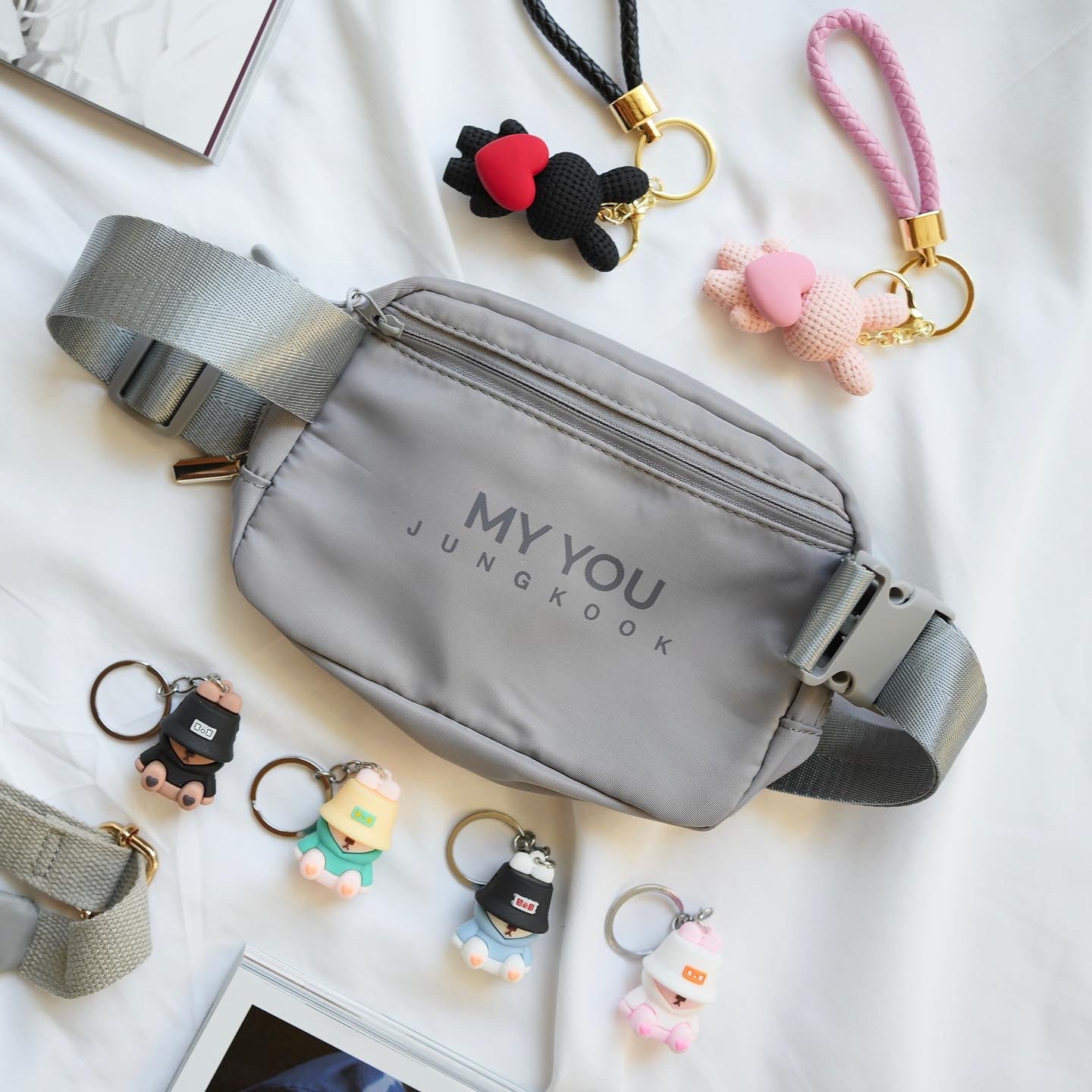Each bag will come with a random free bunny keychain (bucket hat bunny OR heart bunny)