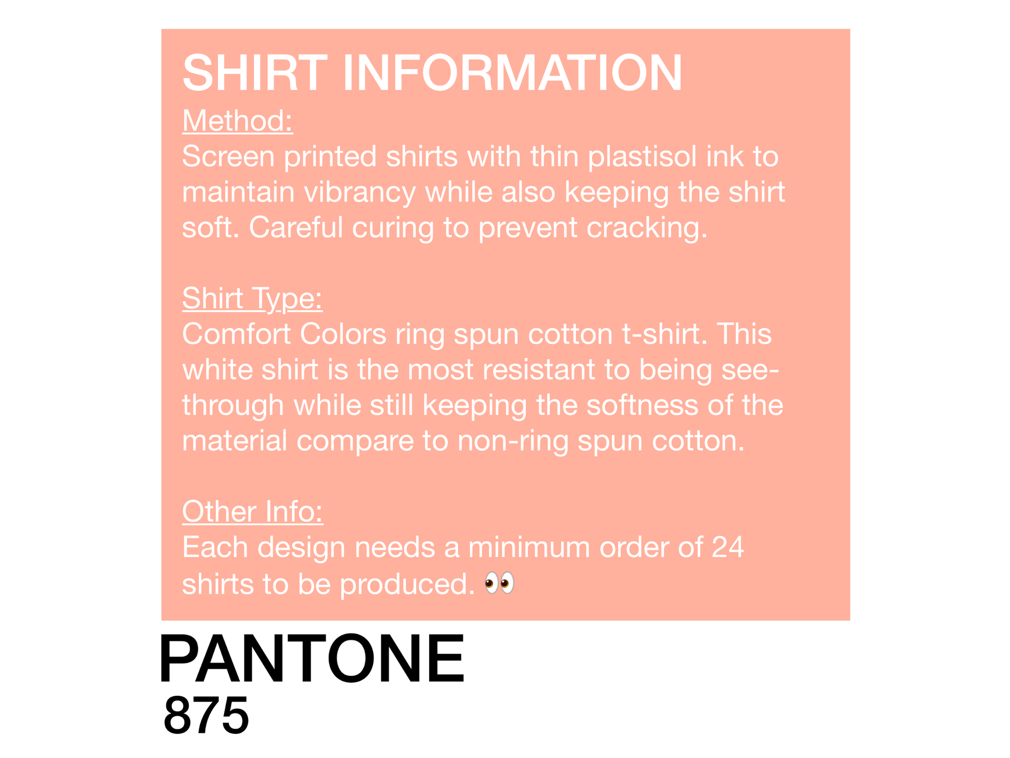 **Please also note that shading of the color may vary a bit between the shirt in this product photo (which is printed with DTG for a quick sample) and the actual product (which will be screen printed). We've done our best to color match!