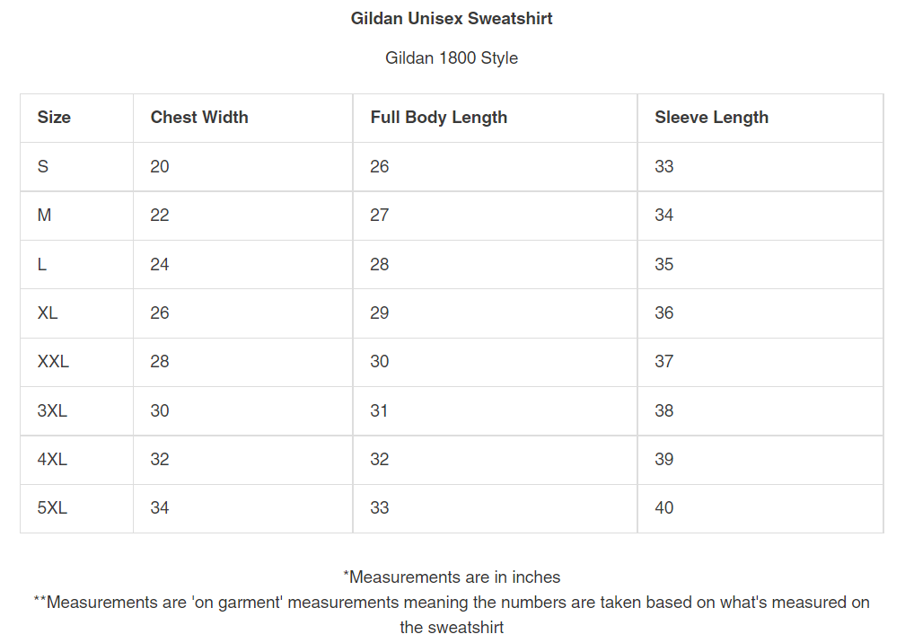 *Product pictures were made with the dark blue Gildan sweatshirts