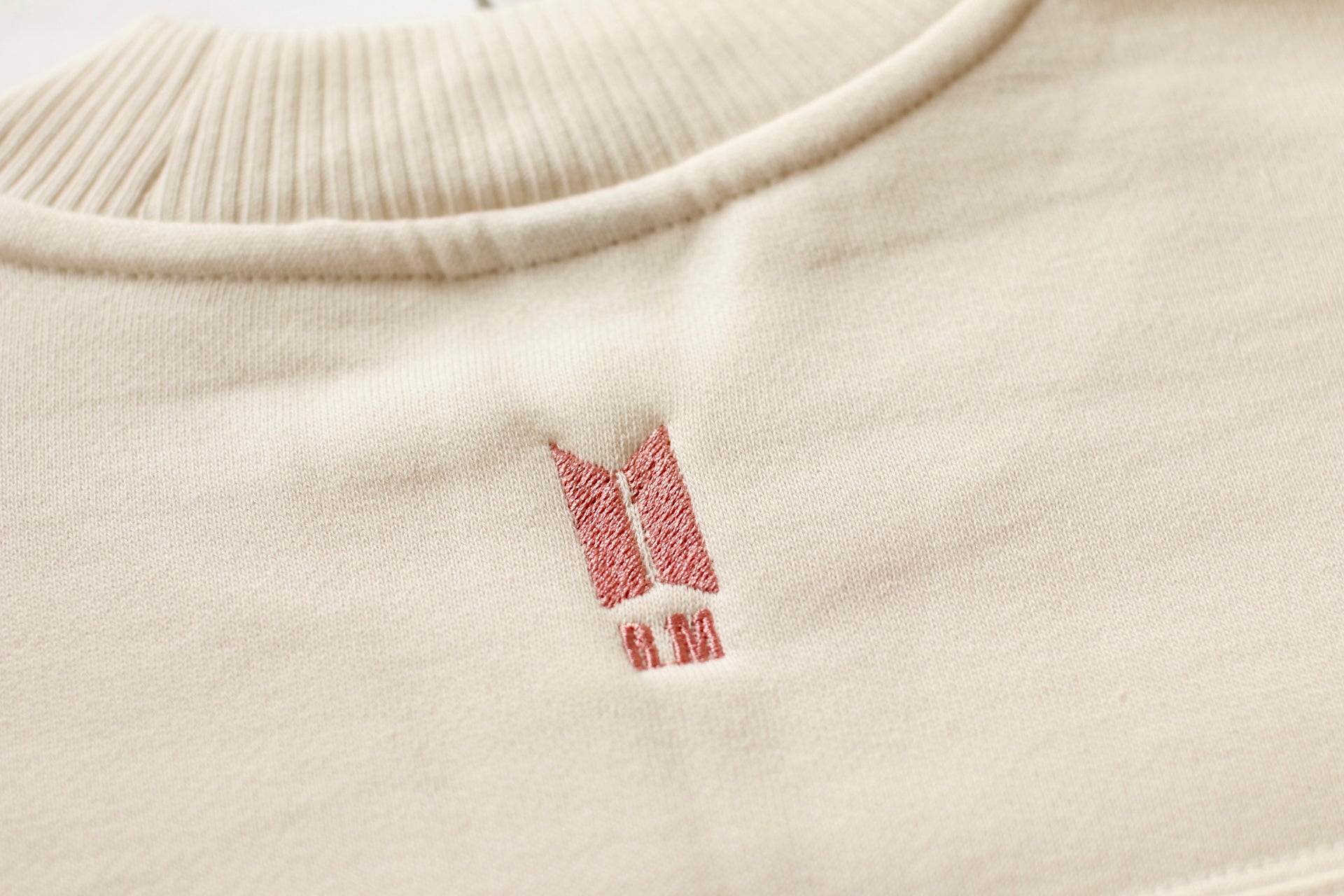 Design Location - Left chest in pink thread, BTS RM back in pink thread