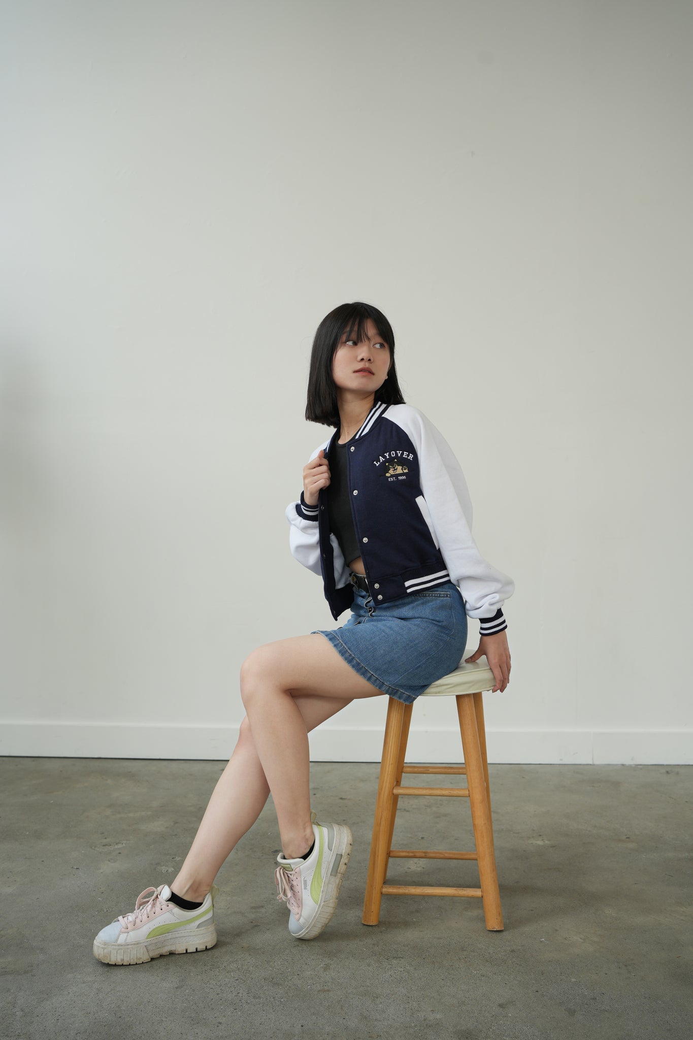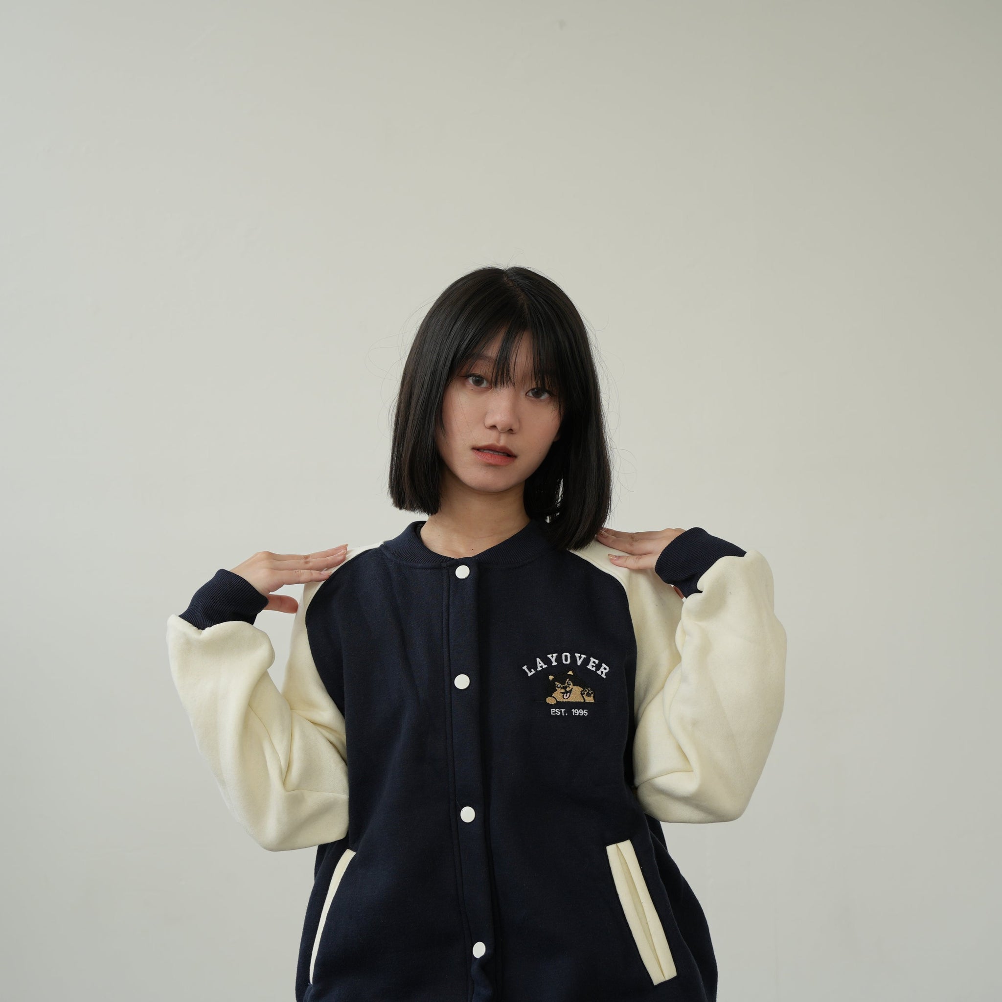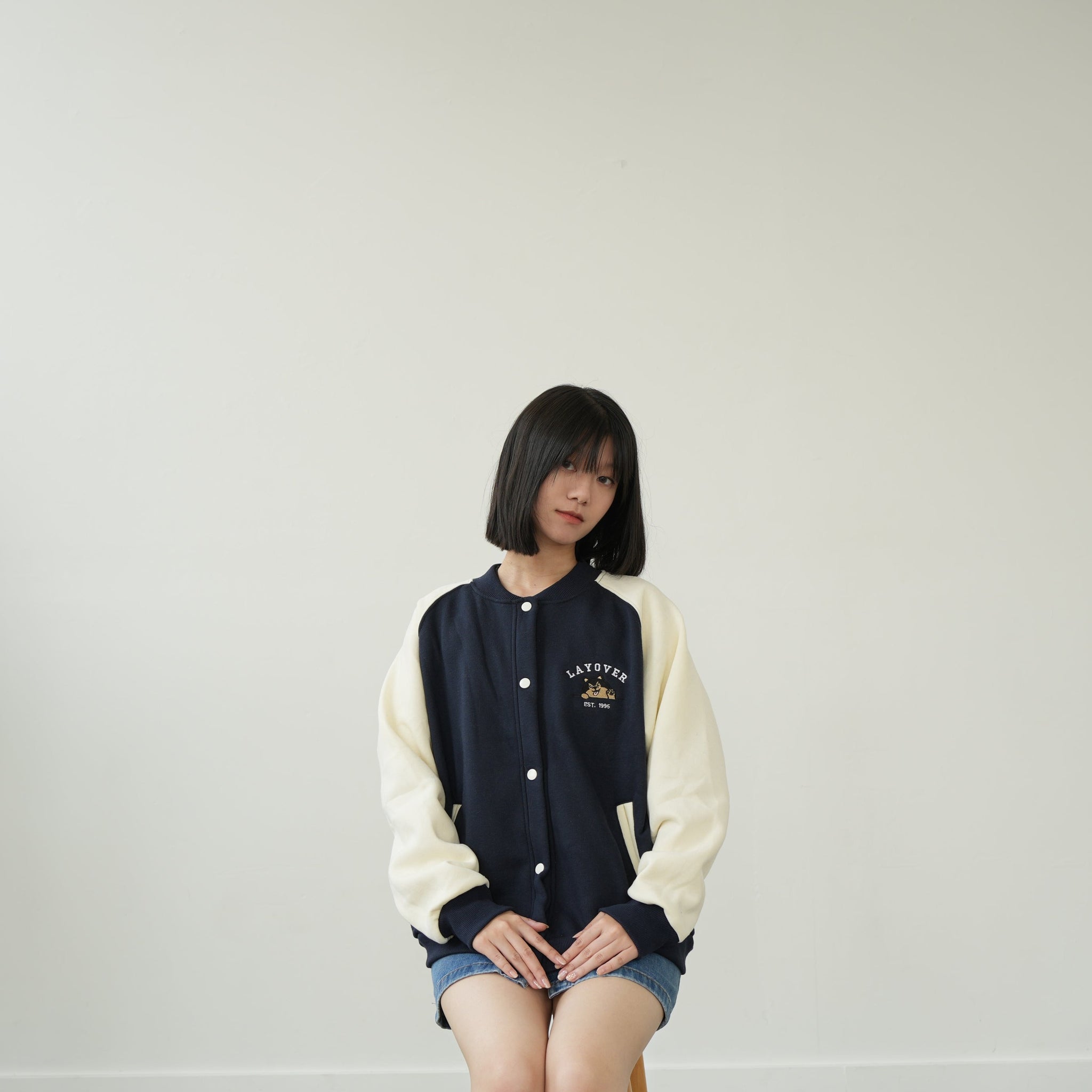 - Women's Regular Cream&Navy Varsity Jacket - (S-L)