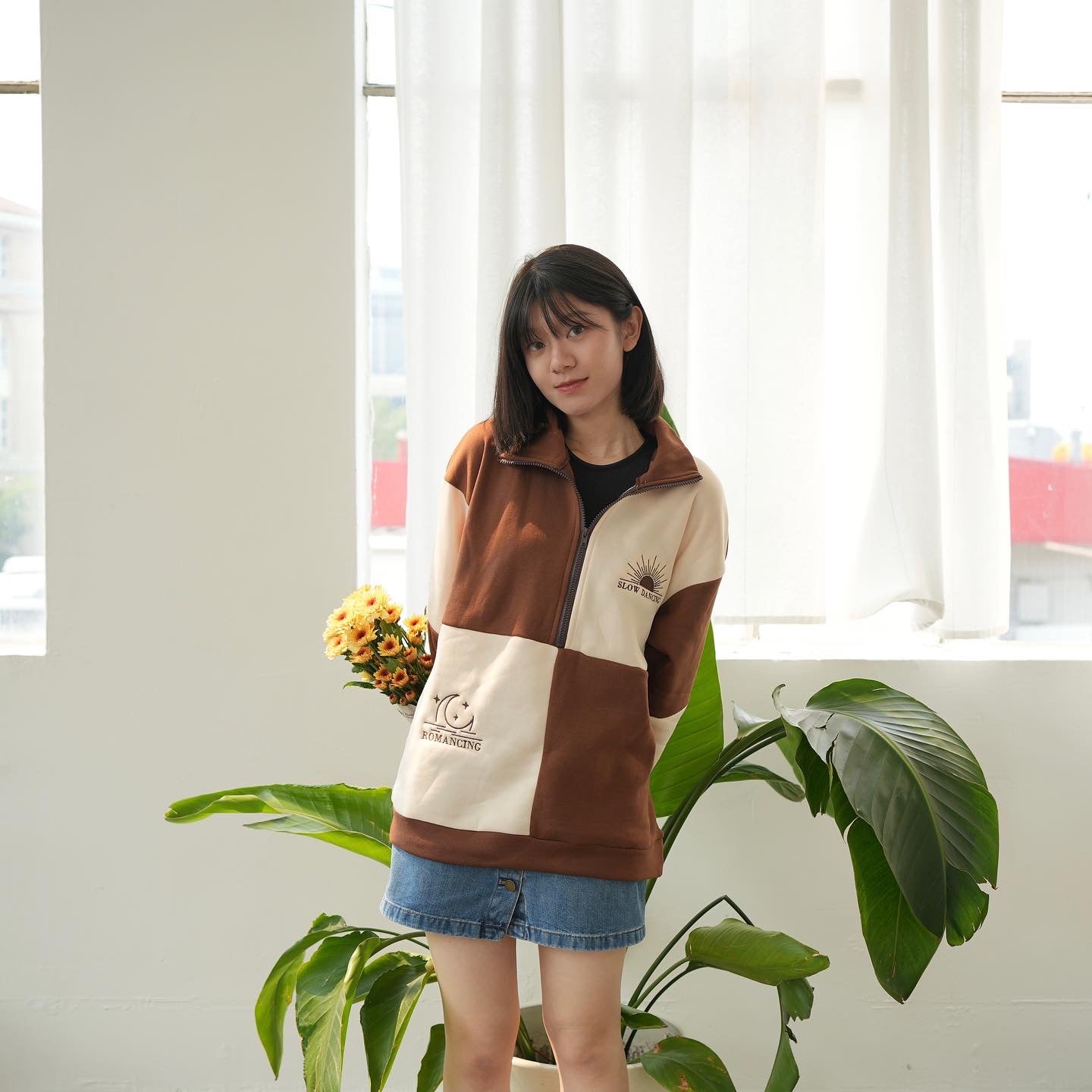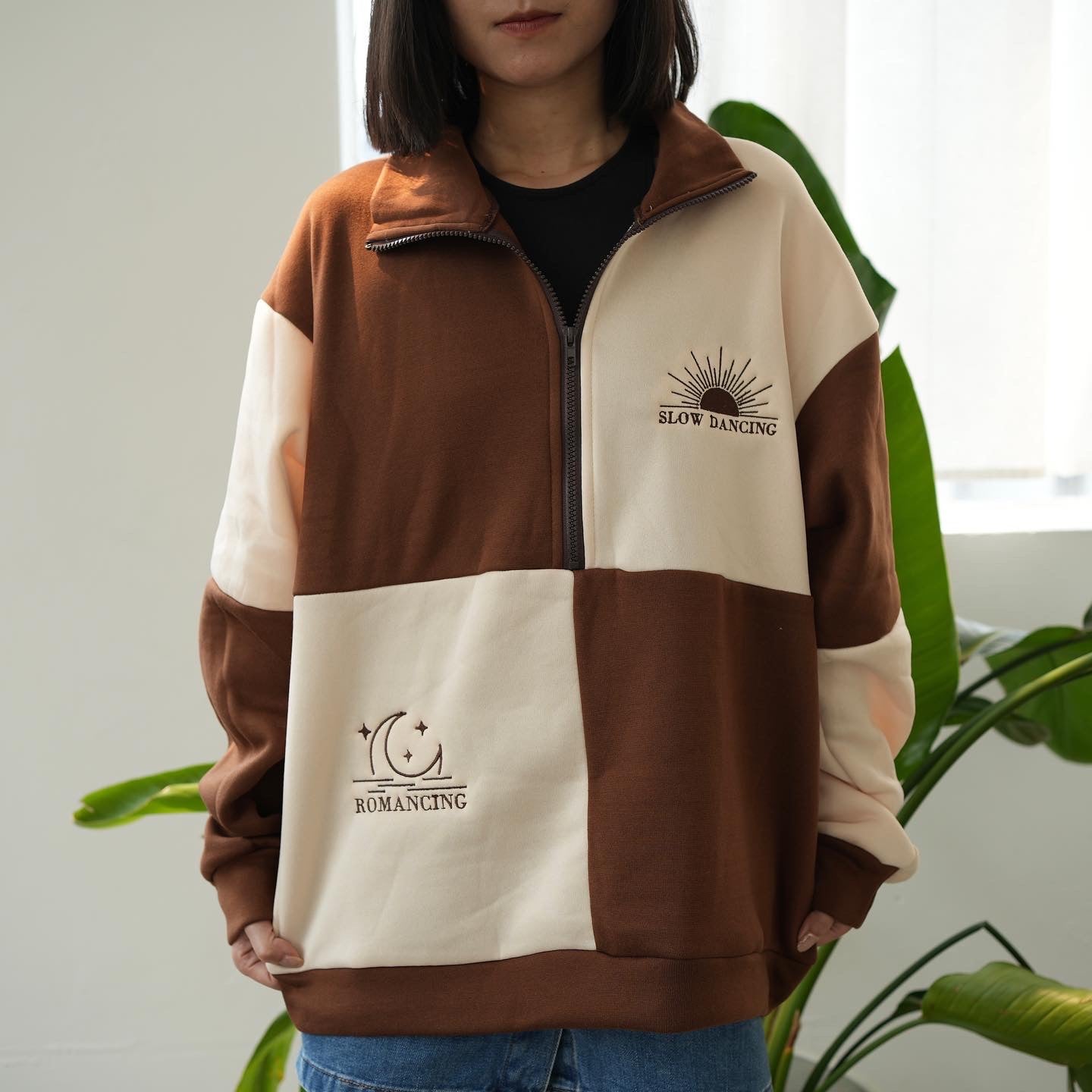 - Women's Beige&Brown Oversized Quarter Zip - (S-XL)