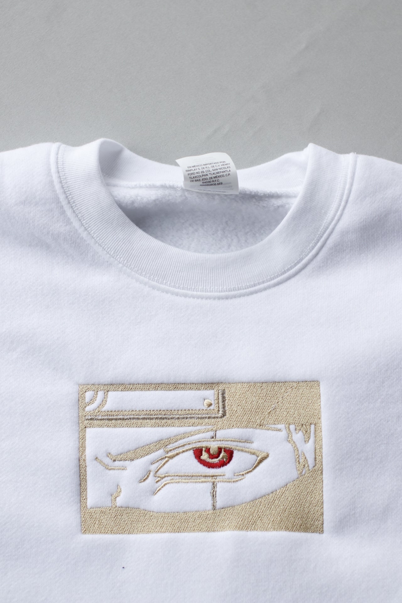Design Location - Center chest, gold thread (red thread for eyes)