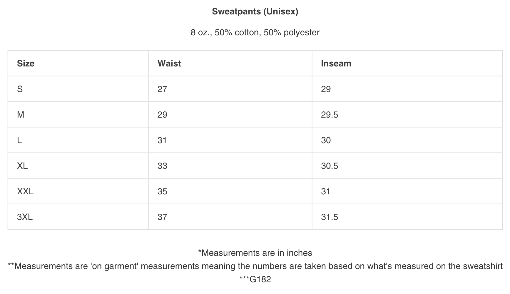- Sweatpants 8 oz., 50% cotton, 50% polyester