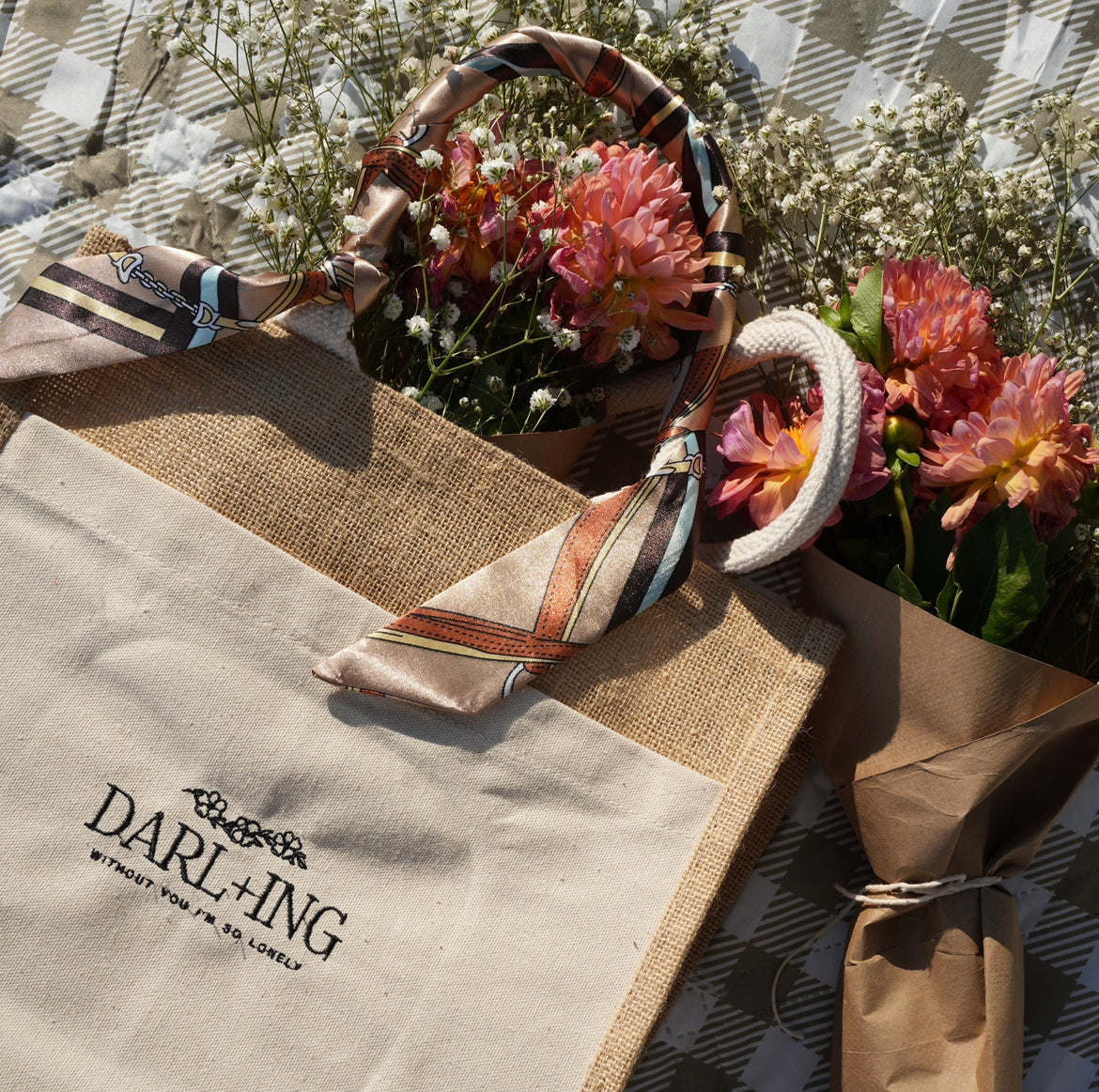 *Each tote bag will come with a random colored twilly scarf which may differ from the product images!